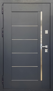Завод «Клинский Дверник» изготовит железную дверь арт.КД-1373 с комплектацией и размерами на заказ. Базовая цена приведена для типового размера конструкции. Конструкция основана на прочном металлическом каркасе, обеспечивающем высокую степень защиты. Лист металла толщиной от 1,5 мм обеспечивает прочность и взломостойкость. Петли выдерживают интенсивную эксплуатацию и не требуют частого обслуживания. Внутри шумо- и теплоизоляция 4 класса (до –37 дБ), которую можно выбрать по желанию: Rock Wool, пенопласт, минеральная вата, базальтовая плита, Ursa. Контуры уплотнения обеспечивают комфортный микроклимат в помещении, препятствуя проникновению холода, влаги и пыли. Комплектация включает два замка разного типа, глазок с антибликовым покрытием, ручки и противосъемные фиксаторы, которые предотвращают снятие полотна с петель.